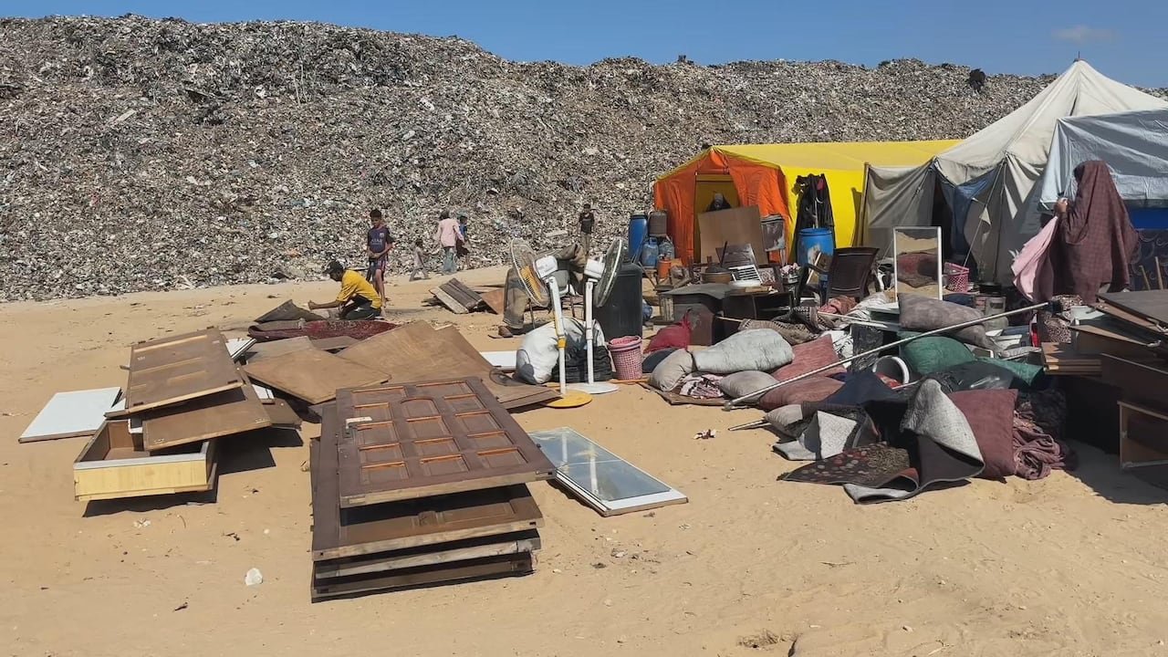 Al-Zawaida-ban, a Gázai Közép-övezetben, néhány család, amelyet az Izrael-Hamas háborúja kiszállított otthonukból, menedéket hozott létre egy hulladéklerakóban. – Megpróbálom megvédeni a gyerekeimet. Nem alszom, így a kutyák nem jönnek be ránk ”-mondja Omar al-Far, 41 éves. – Van méreg és a halott állatok illata.
