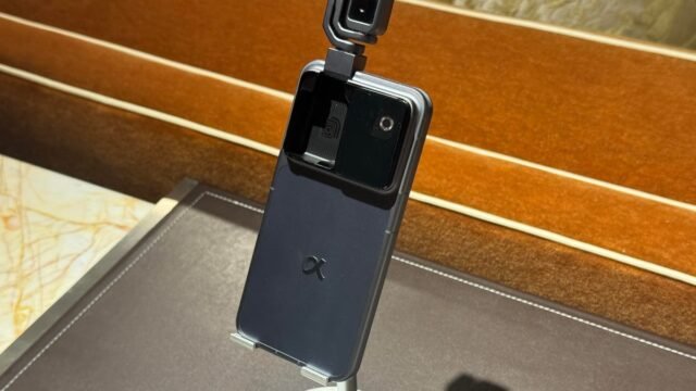 at CES 2026 Először megpillantottam a telefon prototípusát a kiugró DJI Osmo-szerű kamerájával és gimbaljával. Tekintettel arra, hogy a telefon testének egy része át van hajtva ezeknek az elemeknek a befogadására, amikor össze vannak hajtva, ez érthető módon nem tartozik az elmúlt egy évben látott ultravékony eszközök közé.