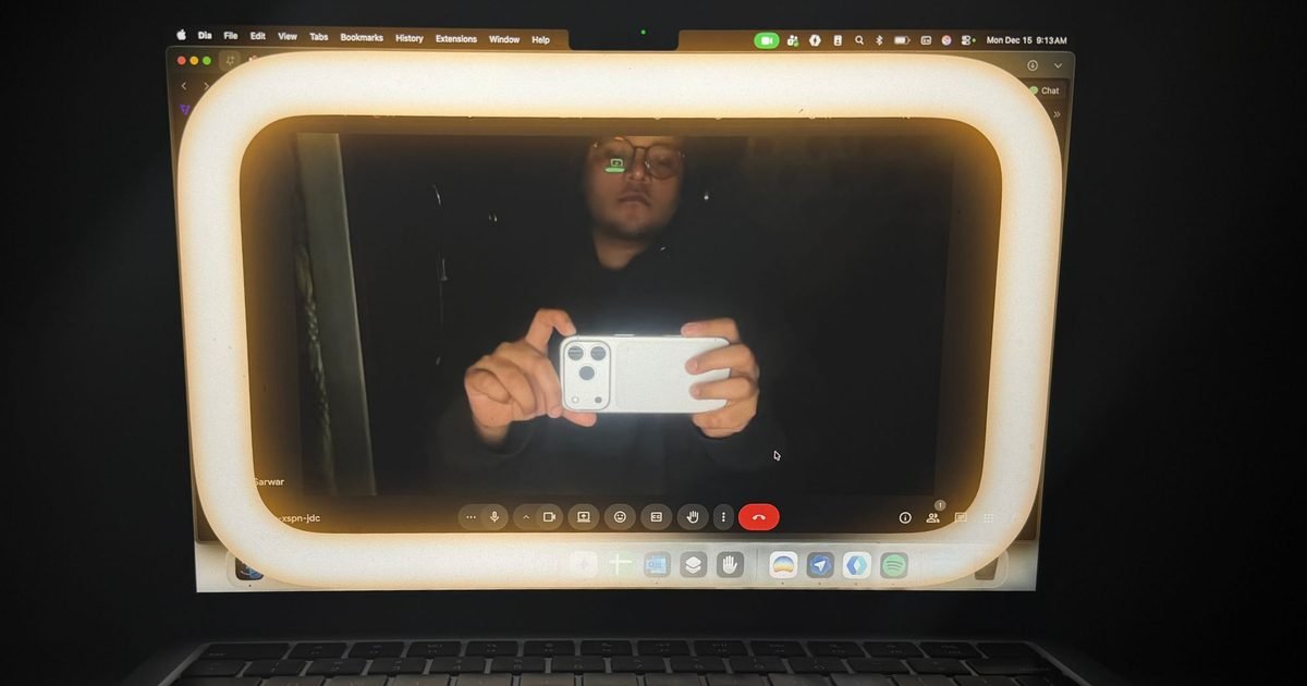 Ugyanaz a Mac volt, mint általában, a videohívási alkalmazásom, és egy ismerős mobilinternet-helyzet. Az egyetlen különbség ezúttal a macOS 26.2-es frissítéssel érkezett új kijelzővezérelt fénykitöltés funkció volt, amely most már széles körben elérhető a Mac felhasználók számára.