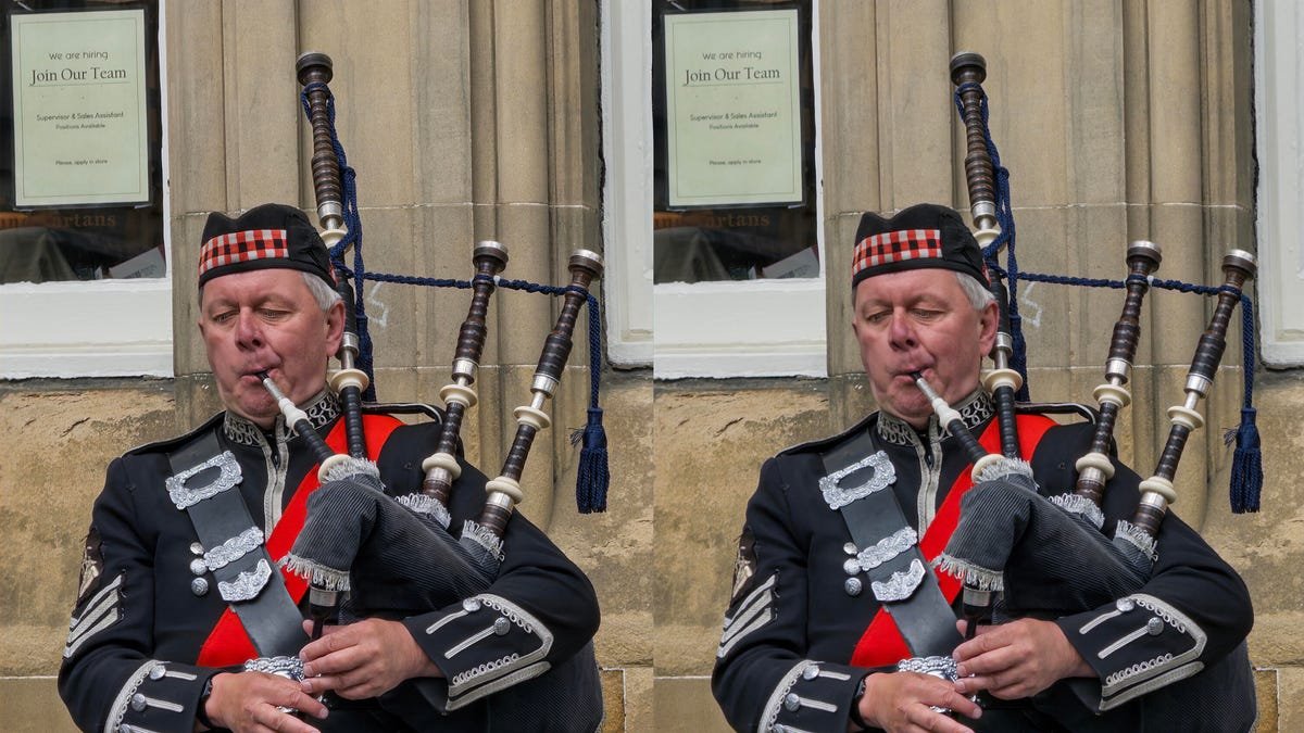 Az eredeti kép (jobbra) és az AI Denoise verzió (balra) közötti élességbeli különbség nem azonnal nyilvánvaló, de összességében egy kicsit élesebbé teszi a jelenetet.