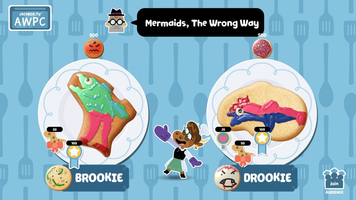 Az egyik kedvenc stílusom a Jackbox Gamesben az olyan játékok, mint a Tee KO, ahol rajzolsz valamit a telefonodra, és a rajzhoz kellemesen vicces címeket rendelsz. A Cookie Haus arra kéri Önt, hogy ezt a sütik díszítésével tegye.
