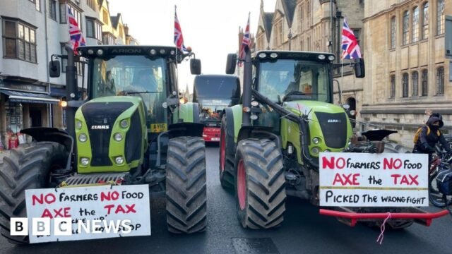 Körülbelül 40 traktor gördült ki kürtölve Oxford városközpontjának utcáira, miközben Steve Reed környezetvédelmi miniszter beszédet mondott egy országos mezőgazdasági konferencián.