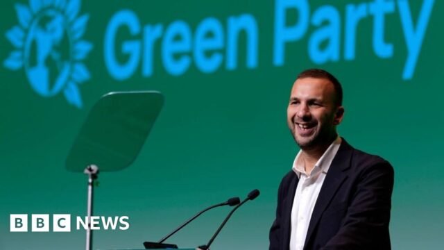 Zack Polanski, a Zack Párt vezetője elindította első konferencia -beszédét vezetõként, és kritizálta Nigel Farage reformpártjának növekedését.