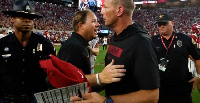 És mégis, úgy tűnik, hogy a szombati mérkőzés a Tigrisek és az árapály közötti legközelebbi mérkőzésnek tűnik. Alabama, amely a legutóbbi AP közvélemény -kutatás során a 8. helyen mászott fel, miután bosszút állt Diego Pavia és Vanderbilt ellen, Missouriba utazik mind lendületével, és ami még fontosabb, nincs hiba margója. A veszteség, még a 15 legjobb csapathoz vezető úton is, mint például a Tigers, valószínűleg a CFP beszélgetésről a második szezonban elindítja a dagályt. Ez anatéma a tuscaloosa embereknek.