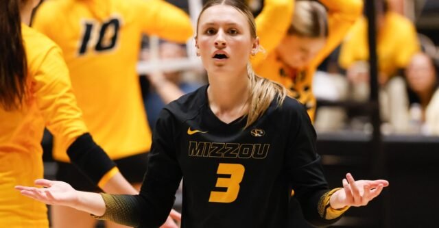 A Mizzou röplabda elrontotta a vereséget a győzelem állkapocsaiból, három egyenes szettet elvesztett Oklahoma -nak, miután megnyerte az első kettőt. A tigrisek a Hearnes 30-28, 25-21, 20-25, 21-25, 9-15.