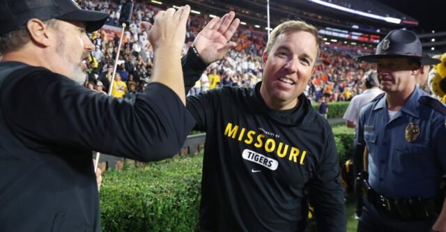 Enigma: Missouri. A Tigers hasonló helyen áll, mint Vanderbilt, az Alabama elleni vereséggel, és még kevésbé kompenzálják ezt. A Missouri legjobb győzelme a szombati, dupla hosszabbításos győzelme lehetett az immár négy vesztes Auburnben. Ezen kívül van még egy FCS-győzelem a Central Arkansas ellen 2-4-re, egy 2-5-re nyert Sun Belt csapata Louisianában és egy 0-7-es MAC-csapat, Massachusetts. Kansas és Dél-Karolina is rangsorolatlan, és 0,500 alatt van. A szombati Vanderbilt-i győzelem a Missouri első rangsorolt győzelmét, ÉS első győzelmét adná BÁRMELYIK győzelmi rekorddal szemben. Egy vereség miatt a Tigers egy kötelező győzelmet hozna novemberben, mivel le kell győznie a Texas A&M-et, és november 22-én Oklahomában nyernie kell. Missouri megtalálta a módját, hogy nyerjen a gyengébb versenyben, de a szezon második felében meg kell mutatnia a bizottságnak, hogy több elitcsapat ellen is képes erre.