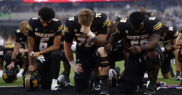 Ezen az első képen a missouri futballisták…imádkoznak?…a South Carolina elleni meccs előtt. A fotóriporterben teljesen biztosnak kell lennünk, hogy pontosan mi történik a fotón, hogy pontosan leírhassuk a képaláírásban. Ez azt jelenti, hogy nem kell feltételezni, hogy az emberek miért jelenítenek meg egy bizonyos érzelmet, vagy miért tesznek konkrét cselekvést. Ha ezt fotóriporter célokra szeretném használni, és nem csak az Instagramra vagy valami ilyesmire, akkor minden játékossal utána kell járnom, és megkérdeznem őket, mit csinálnak itt, de én nem tettem meg. Még csak feliratot sem írtam ehhez a fotóhoz, MERT nem tudom 100%-osan megerősíteni, hogy mi történik.