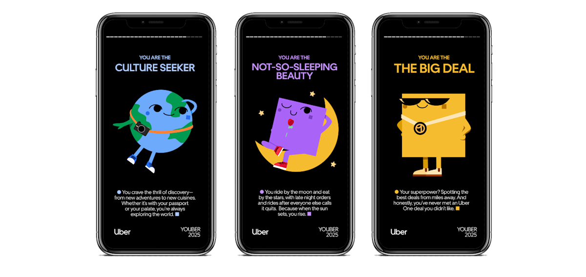 Ezenkívül 14 „Uber-személyiségprofil” is hozzárendelhető, például „Do-Gooder” az Uber Electric hűségeseinek, „Rise & Shiner” a kora reggeli lovasoknak, „Delivery Darling” pedig azok számára, akik „mindenféle szállításnak élnek”. Az Uber lehetővé teszi, hogy közvetlenül a YOUBER-ből ossza meg eredményeit az alkalmazáson belüli „Share this Story” gombbal.