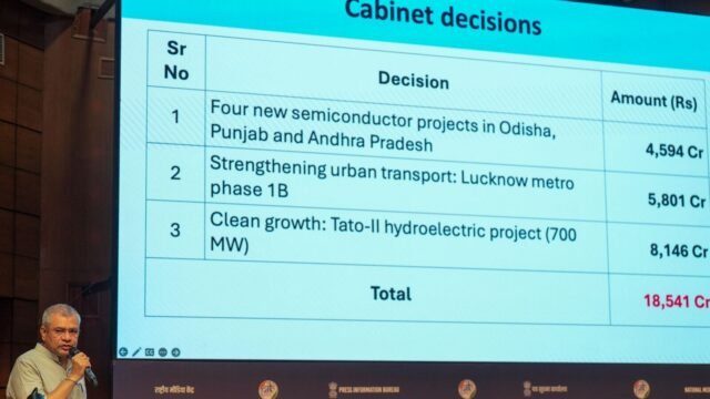 A jóváhagyások között szerepelnek négy új félvezető projekt Odisha -ban, Punjabban és Andhra Pradeshben; egy 700 MW-os TATO-II vízenergia-projekt Arunachal Pradesh-ben; és a Lucknow metró kiterjesztése a következő öt évben.