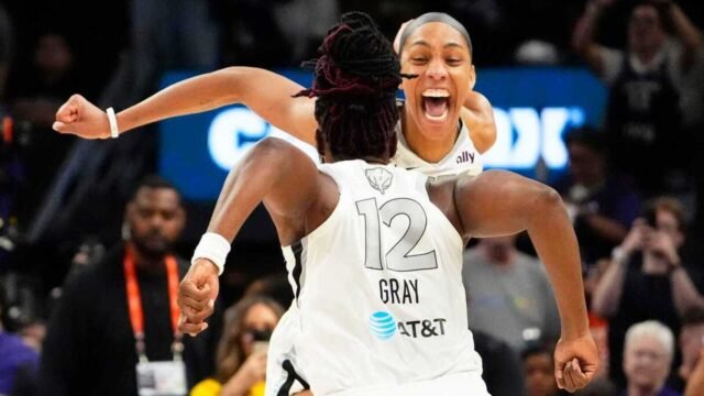 Las Vegas Aces A’ja Wilson csillagnak már van egy zsúfolt trófea szekrénye, de most egy kicsit több helyet kell készítenie. Wilson az ászokat 4-0-os söpöréshez vezette a Phoenix Mercury felett a WNBA döntőjében, hogy megszerezze a harmadik WNBA címet és a második döntő MVP-díjat.